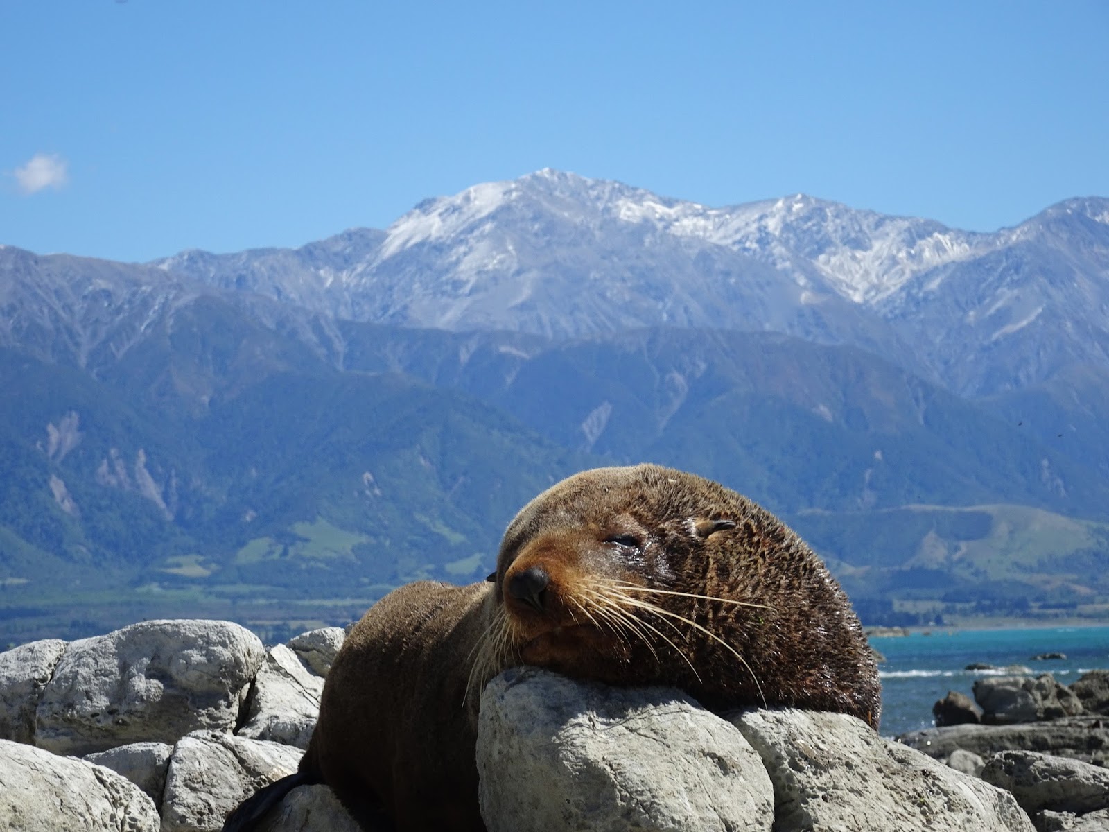 Nochmals ein paar Bilder von Kaikura. Heute Morgen war es so wunderschön, dass wir nochmals an den Strand mit den Seehunden fuhren. Mit Sonne sieht wirklich alles sooooooo viel hübscher aus!