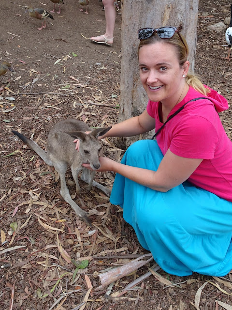 Die frechen Enten, die den Kängurus das Fressen streitig machen und unheimlich laut dabei schnattern.